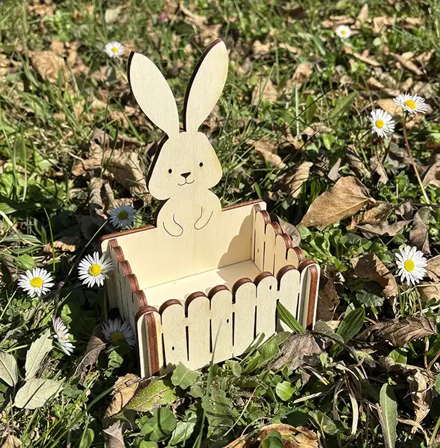 Cette boîte-lapin est une création de pharmacieplus fabriquée par les ateliers de menuiserie de la fondation Eben-Hézer à Lausanne. Fabrication 100 % suisse.