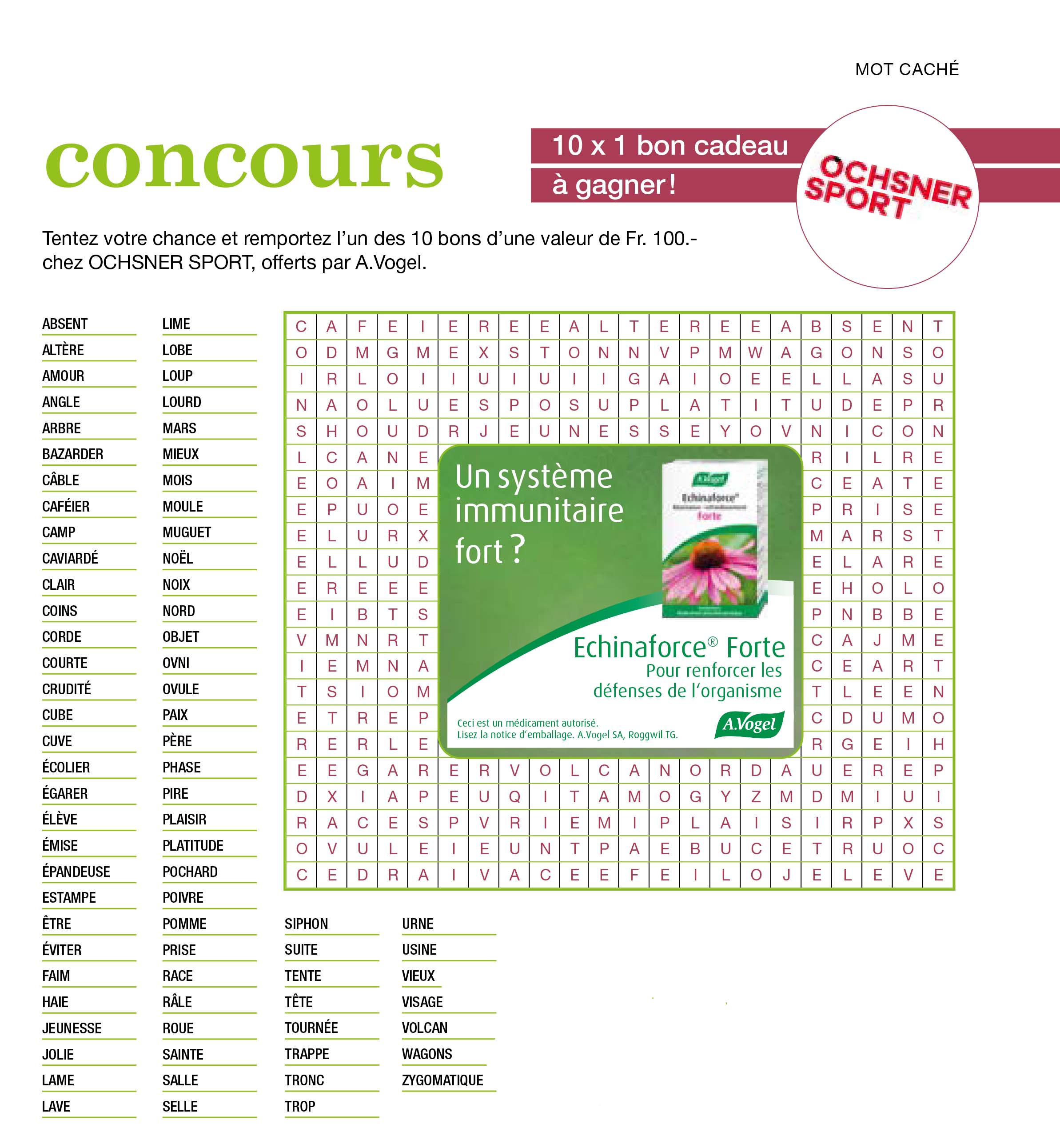 Remportez un des 10 bons cadeaux Ochsner Sport d'une valeur de CHF 100.-. Offerts par A. Vogel.