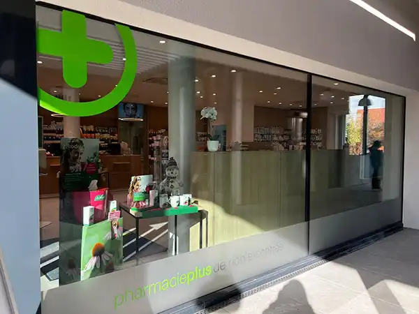Facilement accessible, la pharmacie dispose de places de parking à proximité et se situe dans un environnement pratique et convivial, avec une Migros et un tea-room.